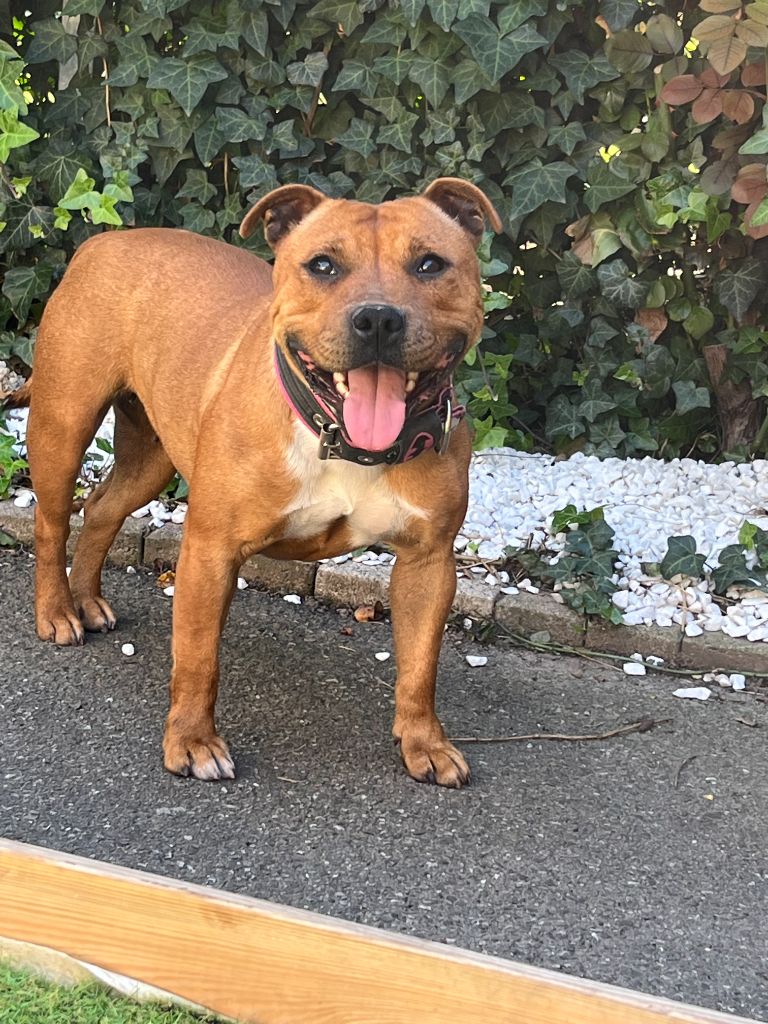 romy et une petite satffie tres sociable elle et venu agrandi notre petite familles